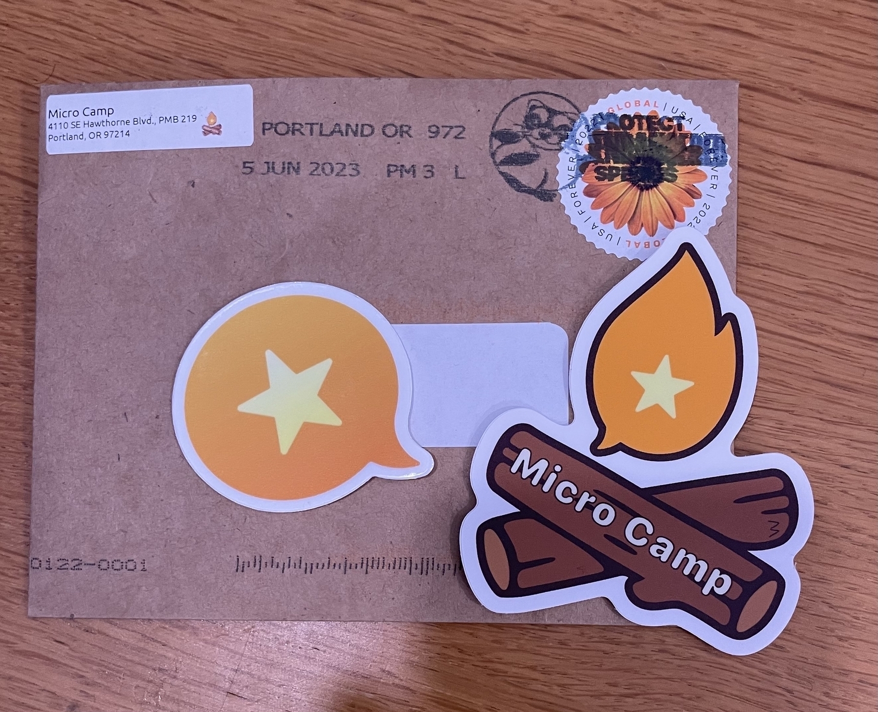 This is why I love micro.blog and try and tell everyone to get on it. Stickers sent to me for just being a micro.camp / micro.blog community member ! Thanks @jean @manton @vincent @cheesemaker wonderful!! From USA -> UK too!