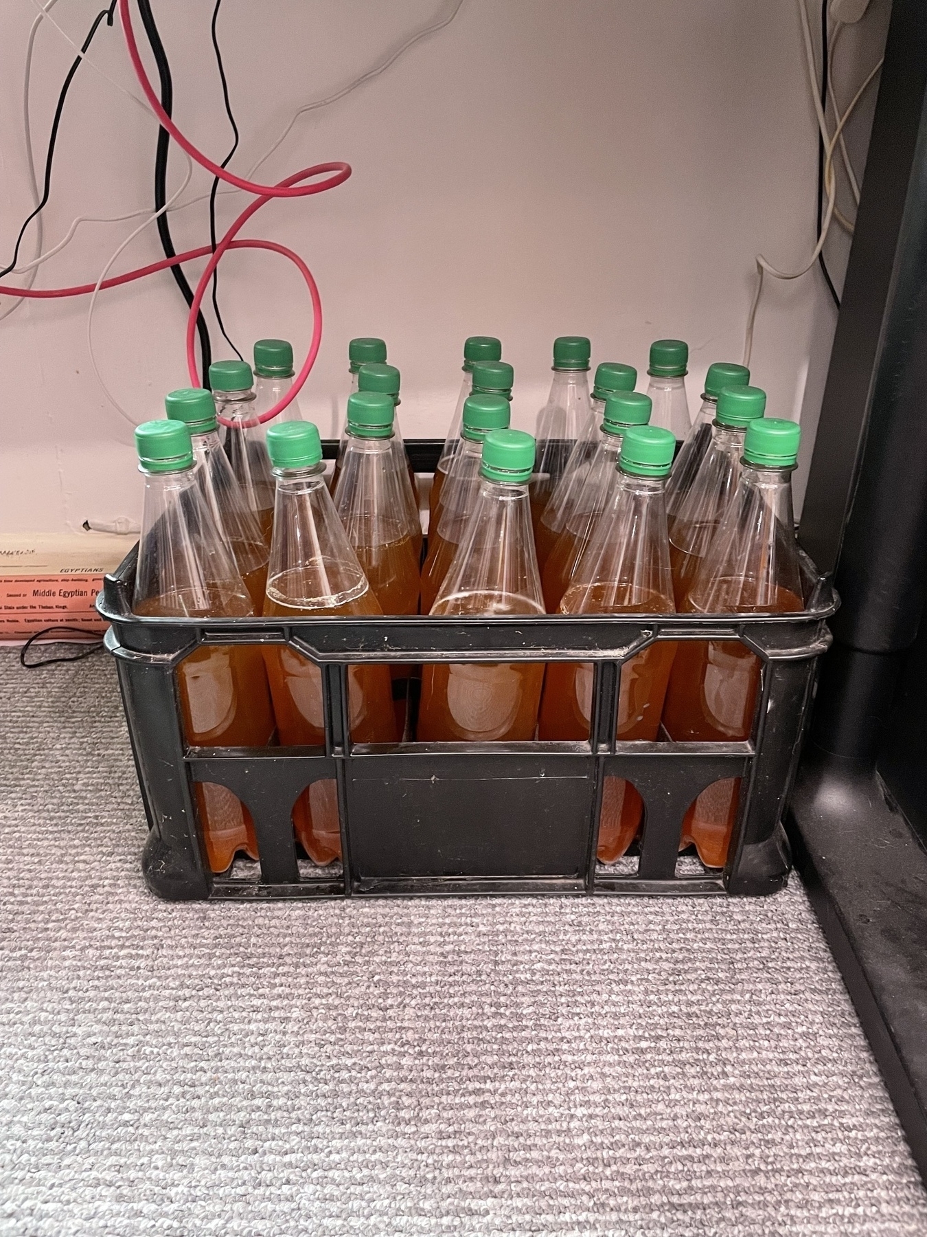 Chinook Beer now bottled, next a few days for the refined sugar to add a little fizz and then cooling/clearing period (min 10days). I had forgotten the 48 bottles I have are 1 litre so I have realised that I can start a new brew instantly as I have more than enough for two batches to be on the go 🍺