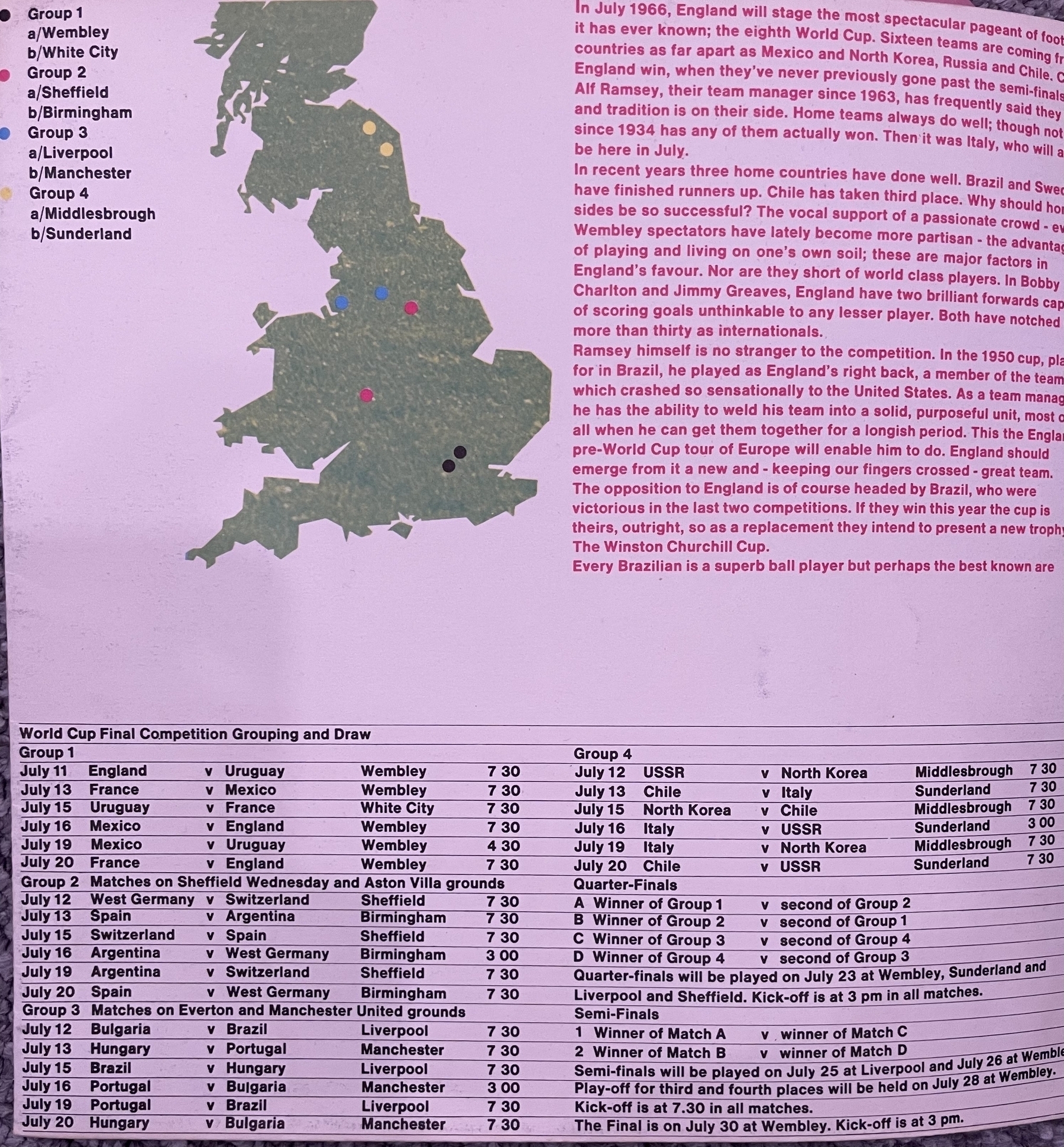 In 1966 England hosted the World Cup and went on to win it. Photos of some of material my late mum kept from then. Now this Sunday England may well win the World Cup again. It’s been a long time but as the nation sings “it’s coming home” it might well be…