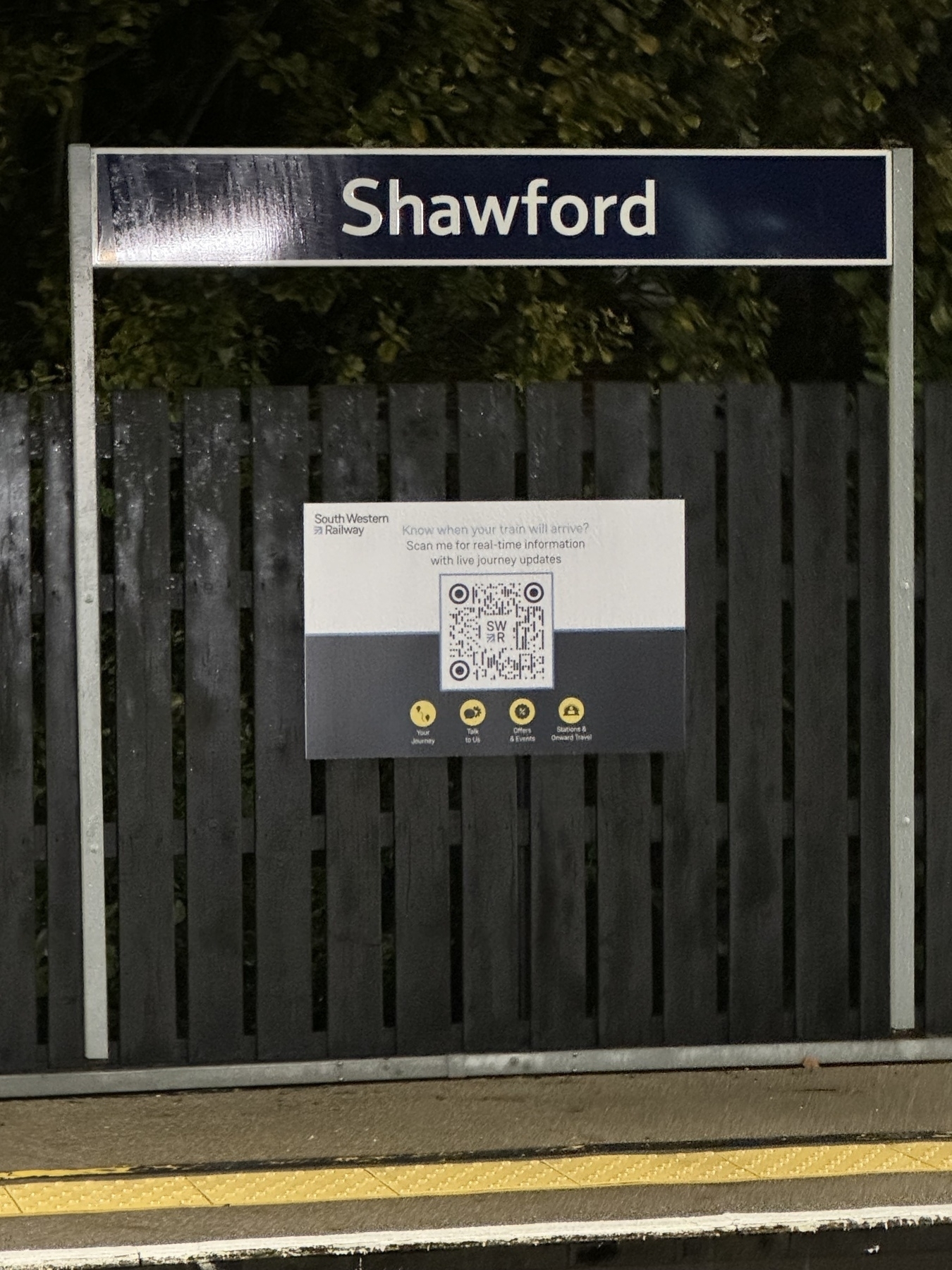Ah the train I dashed for and jumped on wasn’t my train it was a delayed train. So now I take the slower train home from a station that is not catered for a lot (see image - Shawford) should have looked at the platform boards I guess but when I said to the guard he was “yeah sorry we got delayed as we had a wheelchair user” hmm I said maybe you need to cater for all your passengers better… I said but fair as hey trains have had no invest for years. He said well your be pleased we voted to strike again. I said no as you always strike on a Saturday when I go to football with my family. But I hear you. 🚂 and pains