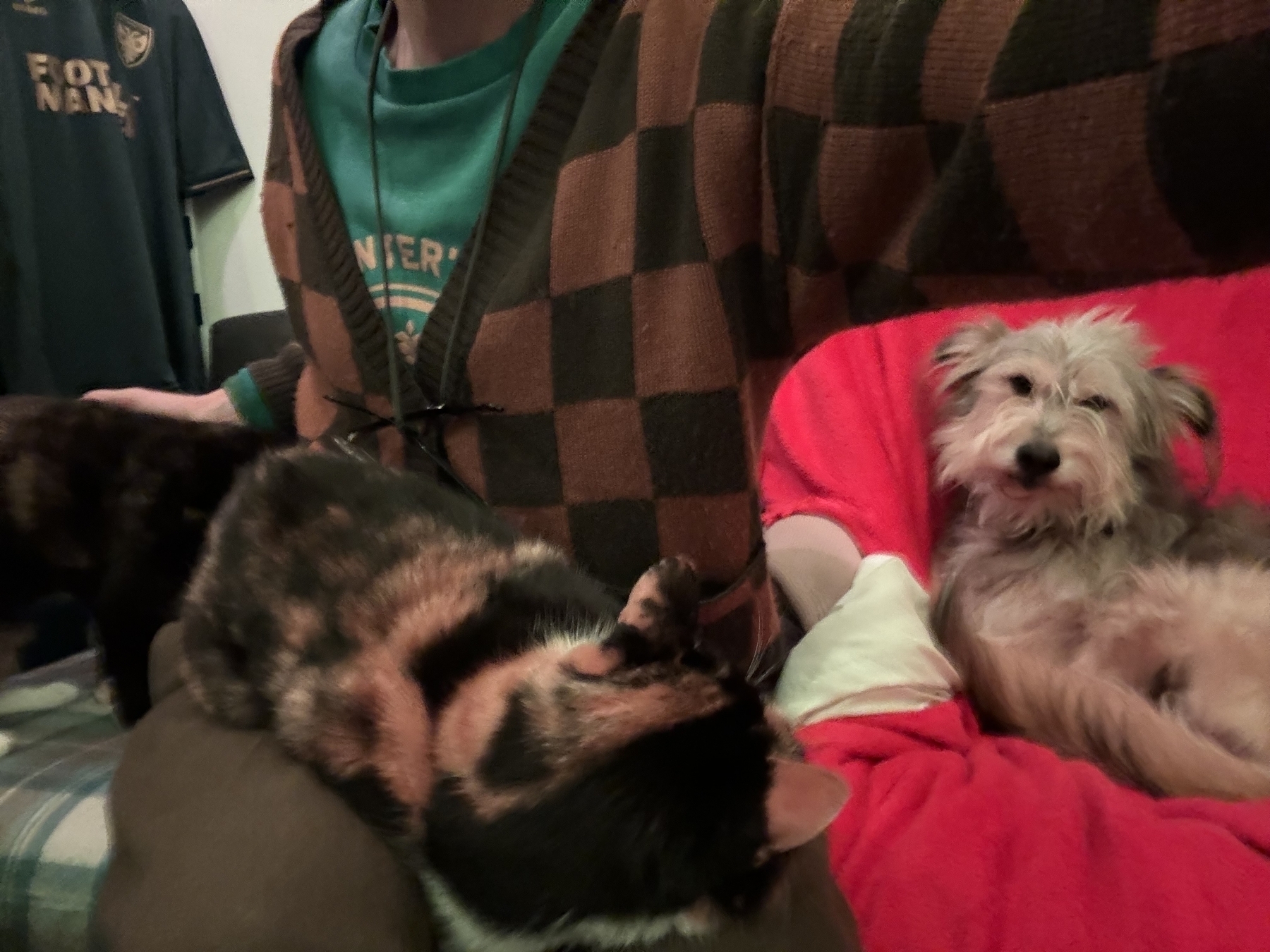 I get home sit down and 2 out of 3 cats and the dog just sit on me and paw me. Yes they have been feed just want more attention and a warm spot I guess 🐱 🐈⬛ 🐶