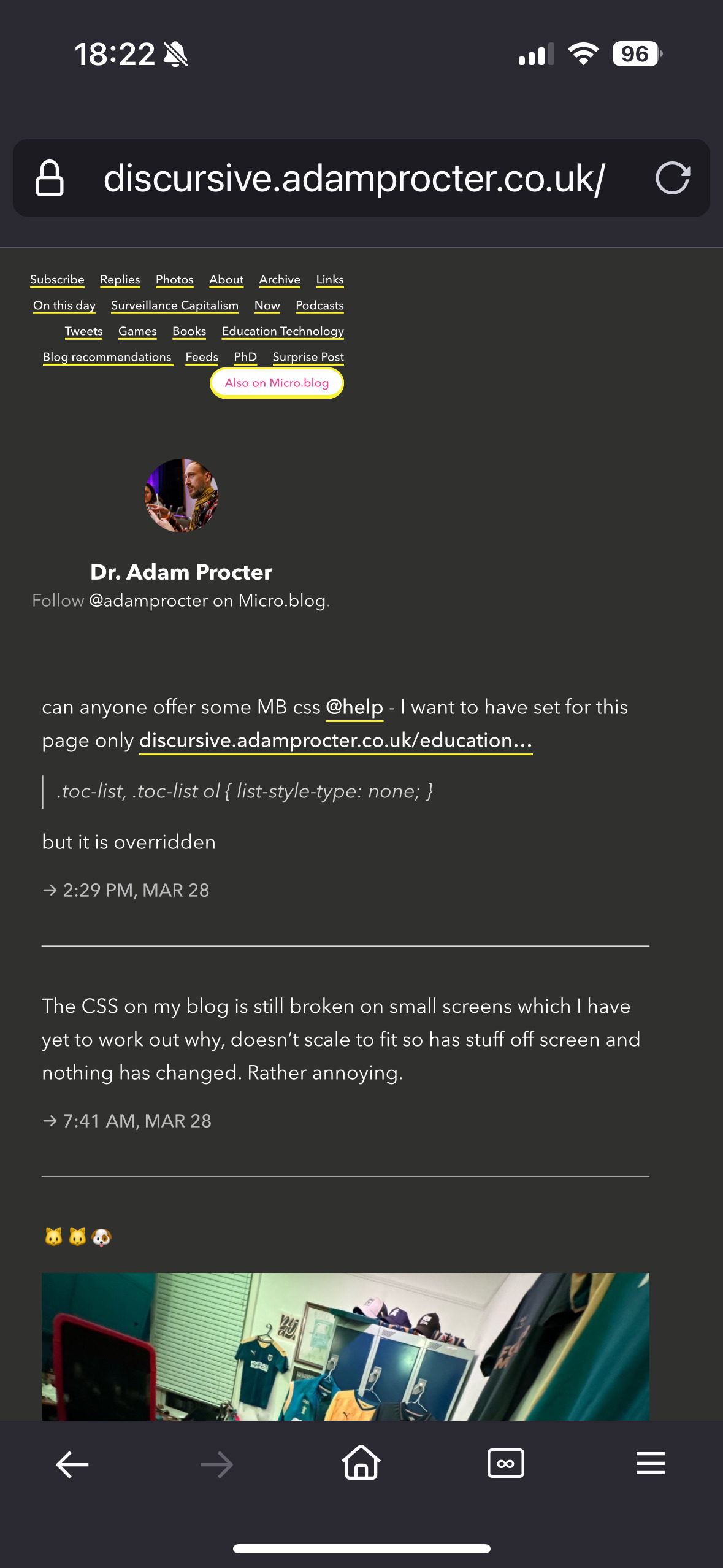 The CSS on my blog is still broken on small screens which I have yet to work out why, doesn’t scale to fit so has stuff off screen and nothing has changed. Rather annoying.
