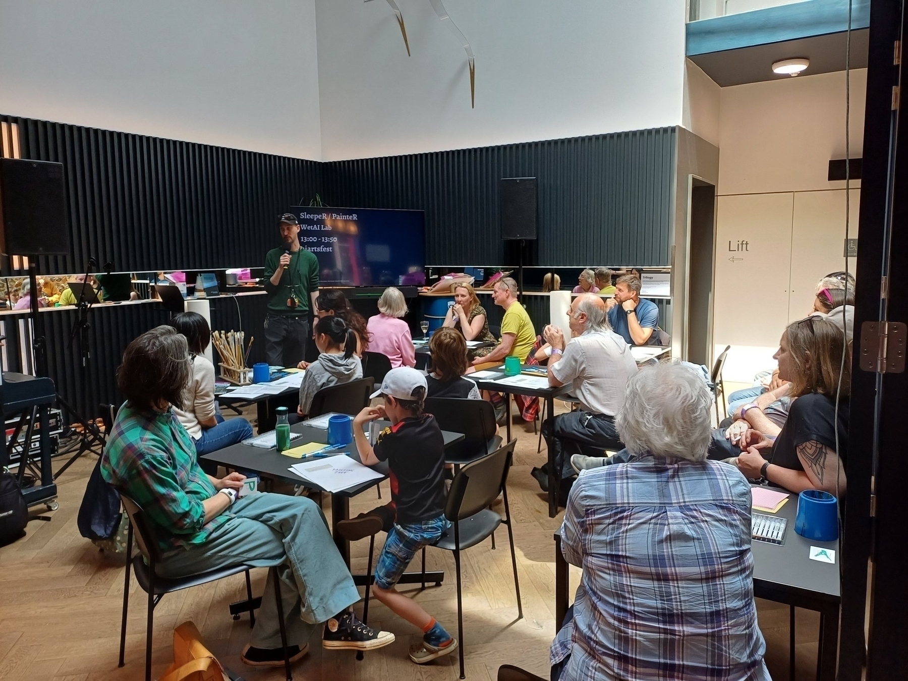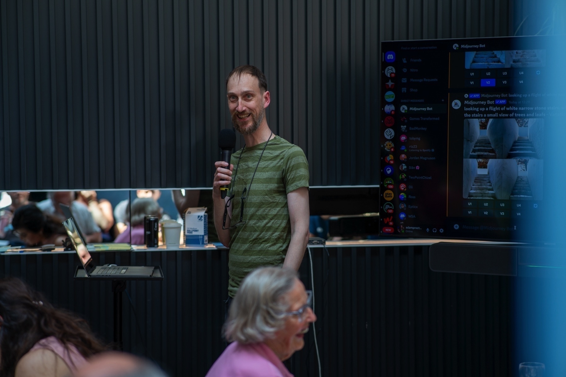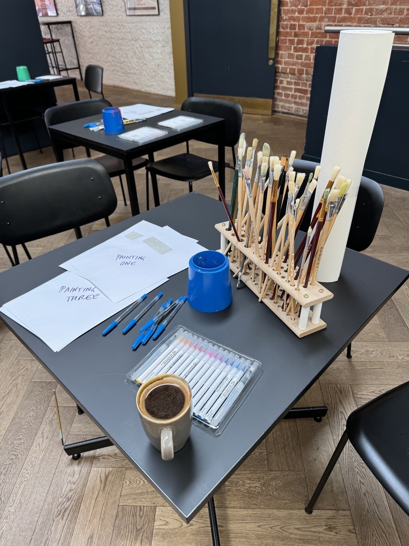 Sunday fun workshop for AI Arts festival getting visitors to think about and play with AI image generation by writing prompts and painting while I got mid journey also respond to the same prompts. I feel like a number of participants not only had fun but left knowing a little more about how AI works