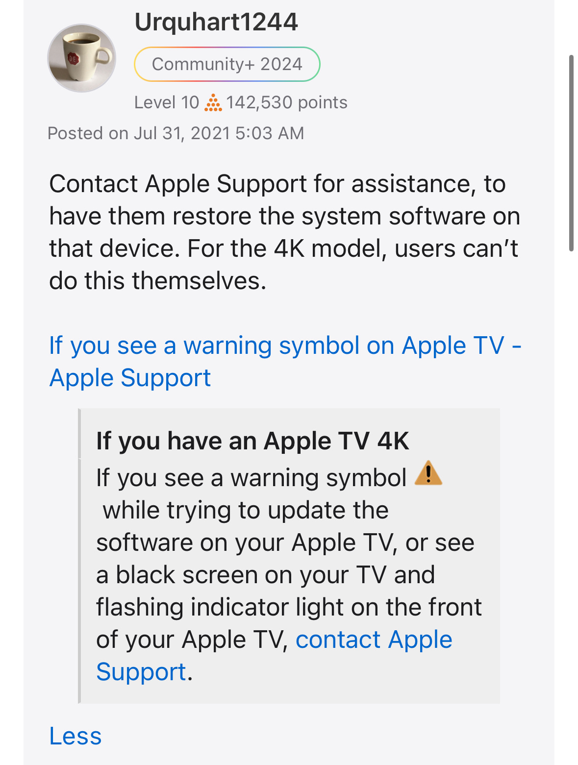 Apple TV 4K wanted software restore can’t do that at home says take to store, store is yeah that’s not true it’s dead you wanna buy a new one 🤦 it’s not even 3 years old